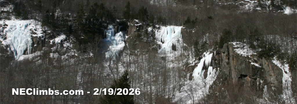 Winterlude, off the Kanc is good as are the climbs at the Albany covered bridge. That's a cool place. A number of folks have asked about where to park if you want to climb at the Barking Dog. If it's not full, park at the pullout below Black Pudding and just walk the 200 yards back down the road just past the last house. DO NOT try to park down on the right next to the gazebo. Speaking of parking - I know I've mentioned this a couple of times, but folks keep getting caught in the ruts at the North End. While I gotta figure most are tourists, I'm not so sure. So just park near the kiosk and walk down the road.
