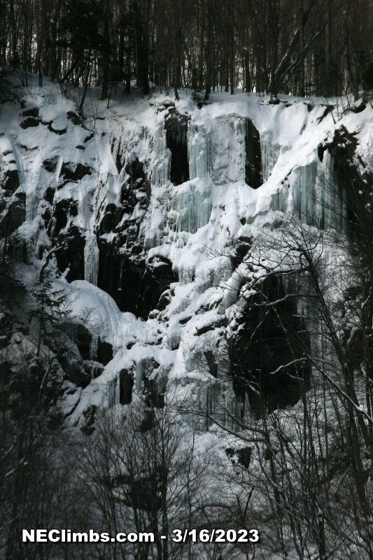 Took a quick ride into the Notch Monday morning. There was a lot more climbable stuff than on Thursday. At this rate by the weekend many things will be in normal IN conditions.Weather permitting of course. NOTE - possibility of rain late Thursday! FWIW In many placed right now, including my yard, the ground is simply NOT fully frozen. Please don't count on getting those solid turf-shots... Protect early and often!