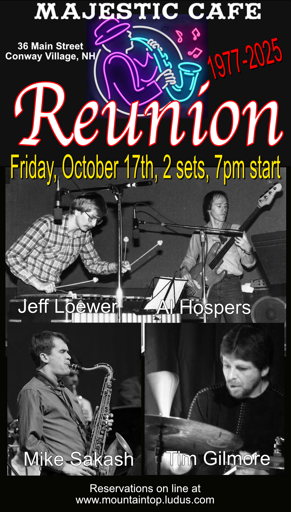 Vibist Jeff Loewer, my dear friend and musical partner of almost 50 years, will be joining me for a fun evening of jazz at the Majestic Cafe in Conway on Friday October 17th. We will be joined by Mike Sakash on sax and Tim Gilmore on drums. It's going to be an amazing reunion and I truly hope to see you there.