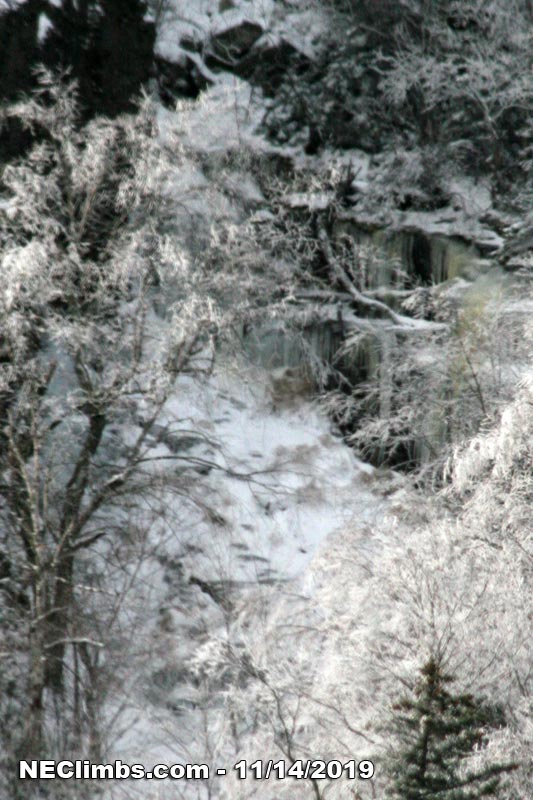 Took a quick ride into the Notch Monday morning. There was a lot more climbable stuff than on Thursday. At this rate by the weekend many things will be in normal IN conditions.Weather permitting of course. NOTE - possibility of rain late Thursday! FWIW In many placed right now, including my yard, the ground is simply NOT fully frozen. Please don't count on getting those solid turf-shots... Protect early and often!